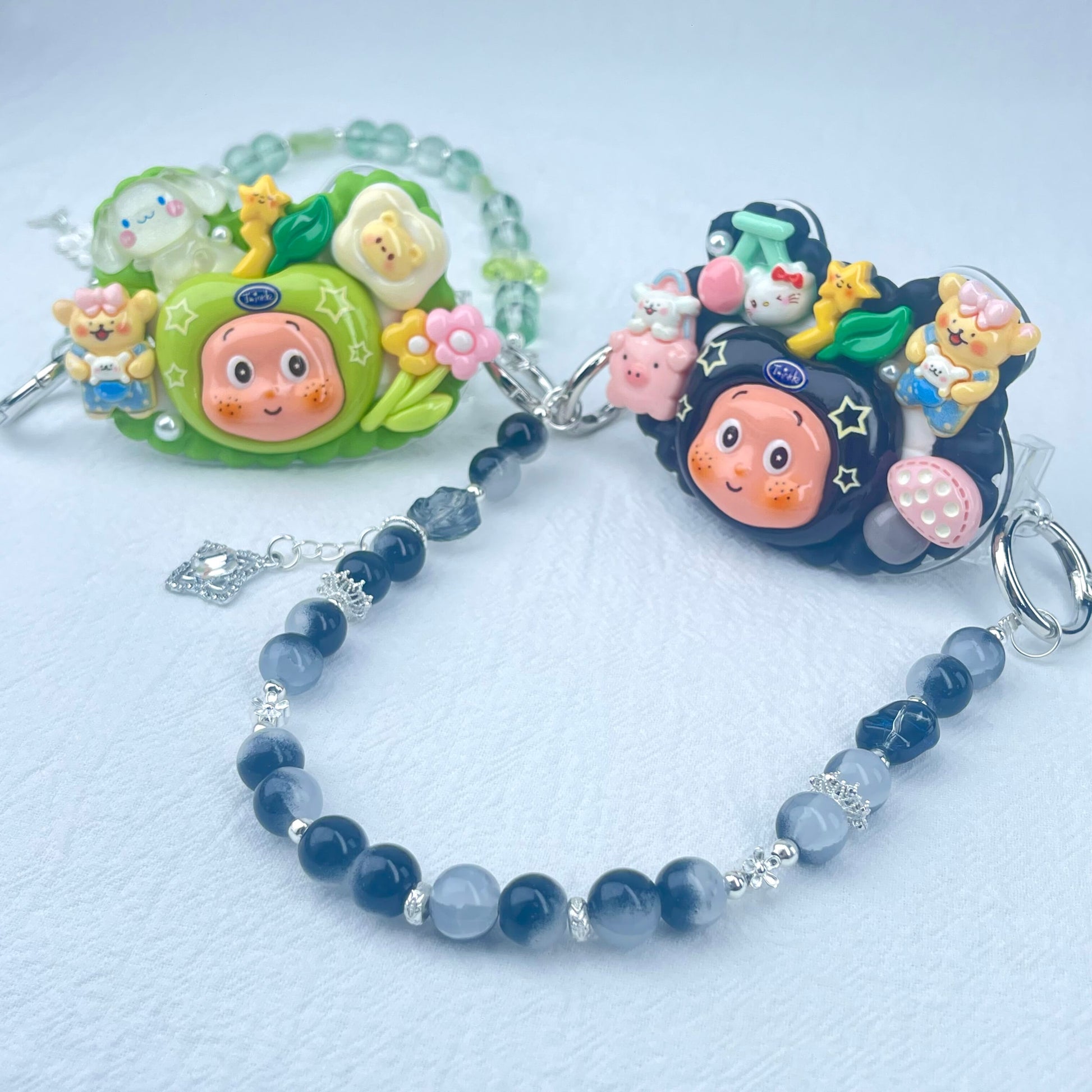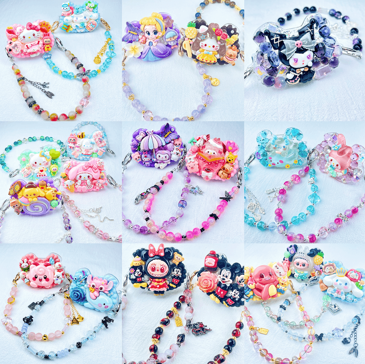 For the Phone Clips, there are the kawaii cute cream gel styles and full rhinestones glittering styles. Both styles are very cute and exquisitely handmade and mixed in the mystery bags.